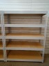 Металлический среднегрузовой стеллаж для склада с настилом из фанеры. Нагрузка на ярус до 300 кг. Быстросборная конструкция (на зацепах).
