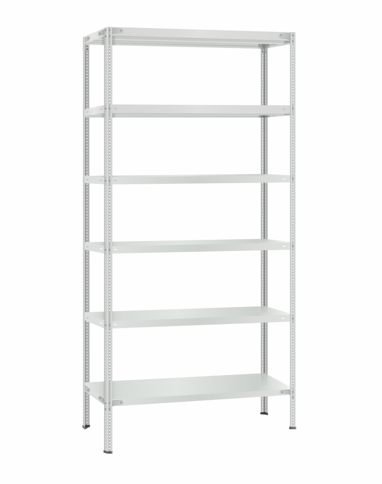 Полки МС Титан изготовлены из высокопрочной стали, покрыта полимерным порошковым покрытием светло серого цвета RAL 7035 типа шагрень