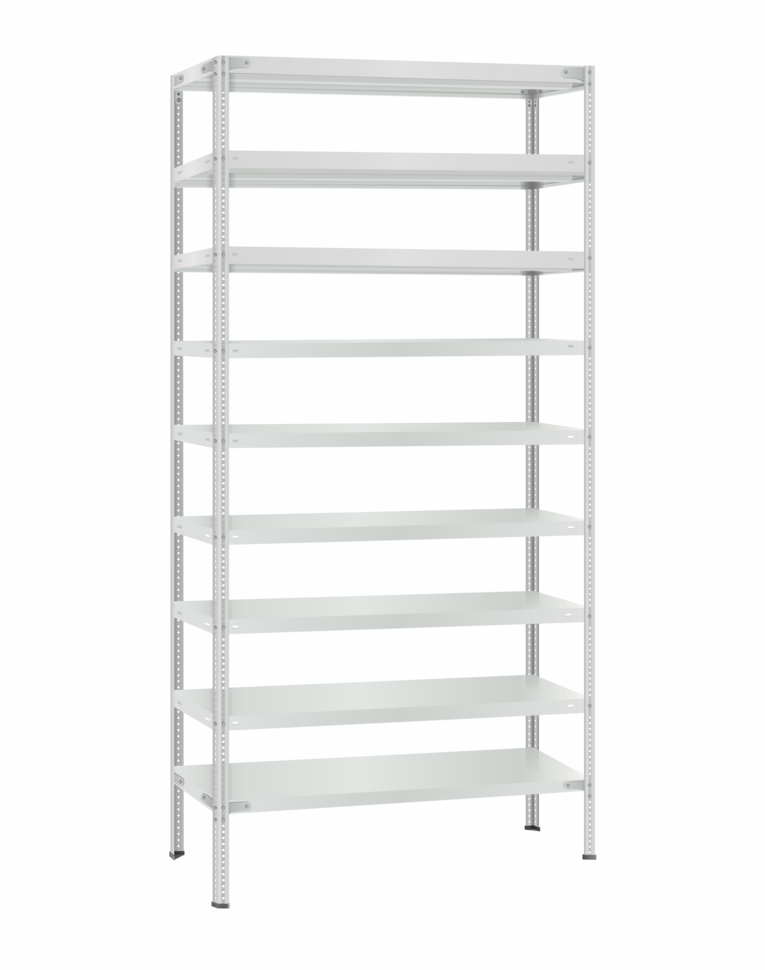 Полки МС Титан изготовлены из высокопрочной стали, покрыта полимерным порошковым покрытием светло серого цвета RAL 7035 типа шагрень