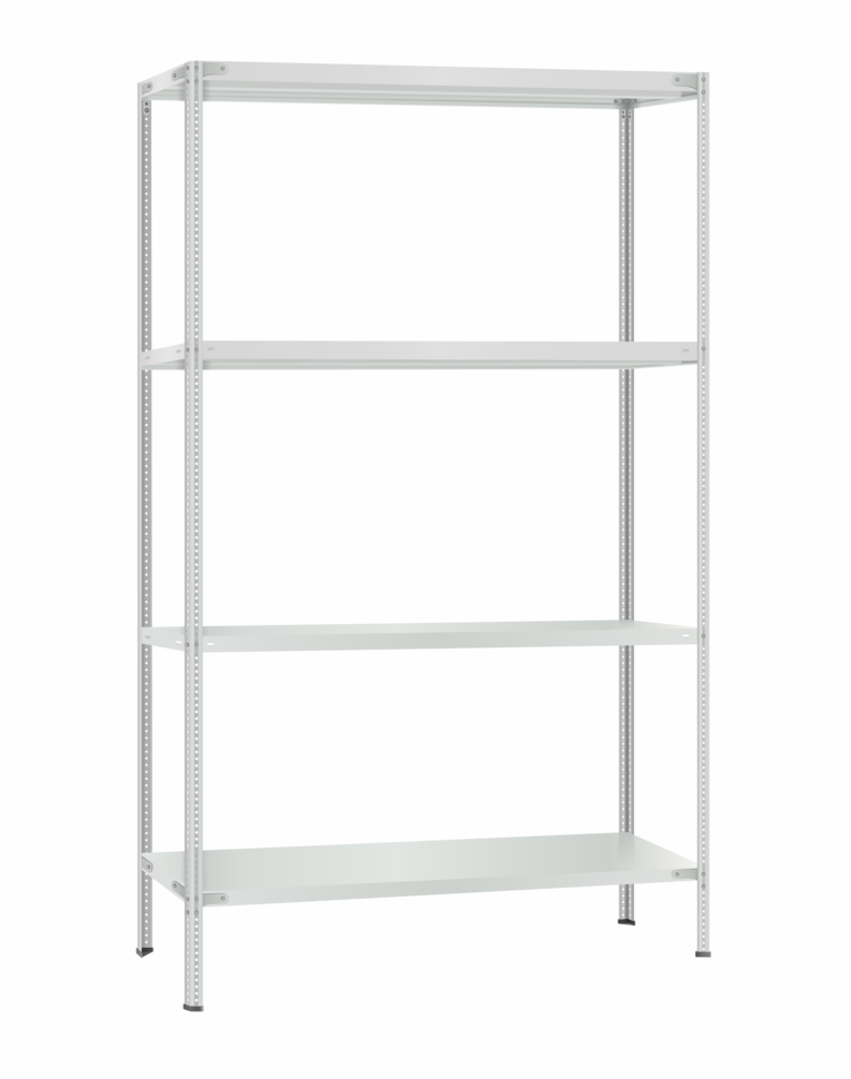 Полки МС Титан изготовлены из высокопрочной стали, покрыта полимерным порошковым покрытием светло серого цвета RAL 7035 типа шагрень